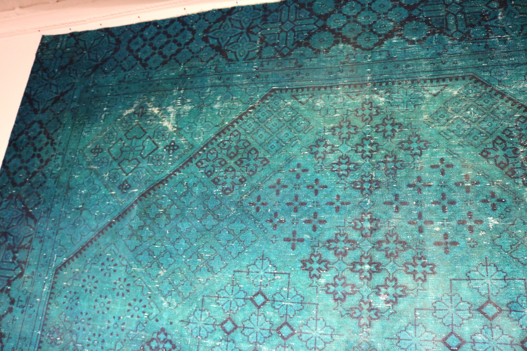 Original handgeknüpfter persischer Teppich.Die Farbe des Teppichs ist blautürkis.